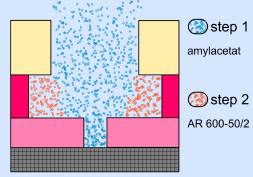 Subsequently, the undercut in the middle layer (PMMAcoMA 33, AR-P 617) can be produced in a second development step with X AR 600-50/2.