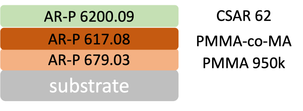 A further variant for the structure of three-layer systems uses 950k PMMA as bottom resist, AR-P 617 as middle layer and CSAR 62 as top resist: