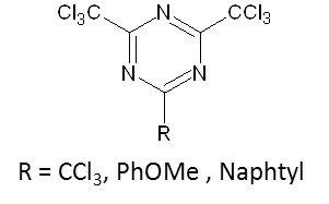 A further important group of substances for negative cross-linking reactions are acidifiers, which induce cross-linking after an activation by reaction with added aminic compounds (cymel). Many halogenated substances are in principle suitable as acidifiers, established however are the particularly light-sensitive trichloromethyl-substituted triazine compounds (Fig.: 4).