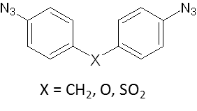 Radical formers are e.g. also aromatic organic diazides which are similarly well suited for photo cross- linking applications (Fig. 3). Exposure to short-wavelength light leads to the formation of highly reactive nitrene-intermediates which may react in various ways with the polymer matrix. By insertion into CH-bonds, secondary amines are formed, an addition to C-C double bounds generates cyclic amines, and radicals are formed due to H-abstraction which also contributes to the cross-linking process.