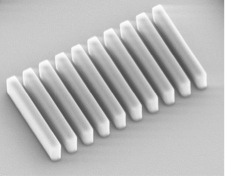 Hence, a more sensitive PMMA-variant was sought. The principle of chemical amplification could successfully be transferred to PMMA polymers. The new chemically amplified formulation is characterised by a very good sensitivity in the wavelength range of 300-410 nm, but even g-line exposure (436 nm) is well possible. Resist thicknesses of up to 5 µm can be realised with the new experimental sample SX AR-N 4810/1. The developer is composed of an anisole solvent mixture. The resist can thus also be used for the structuring of water-sensitive substrates, since no contact with aqueous process chemicals occurs. The resist is thus also suitable for the production of waveguides or applications in microsystems technology.