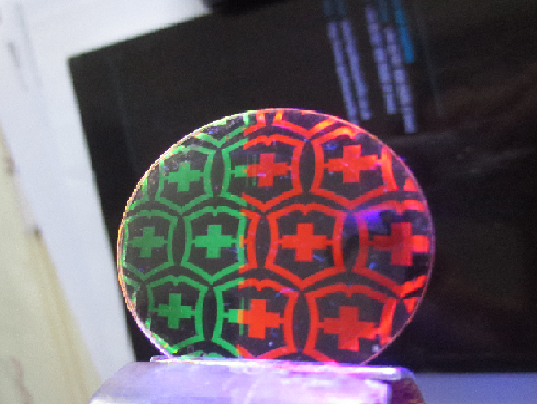 Fig. 3-6: AR logo with two-coloured emission in black light