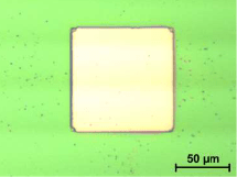 PPA layers can also be structured by laser ablation. Substrates coated with AR-P 8100 were structured with pulsed laser light at different wavelengths at the IOM Leipzig (Dr. Klaus Zimmer). In this process, architectures with very little edge roughness could be generated. In the absorption range of PPA, at 248nm, complete ablation was achieved without damaging the silicon substrate.