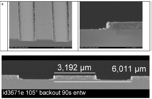 The new chemically amplified formulation is characterized by a very good sensitivity in the wavelength range of 300 – 410 nm. A g-line exposure (436 nm) is nevertheless still possible, albeit with significantly lower sensitivity.