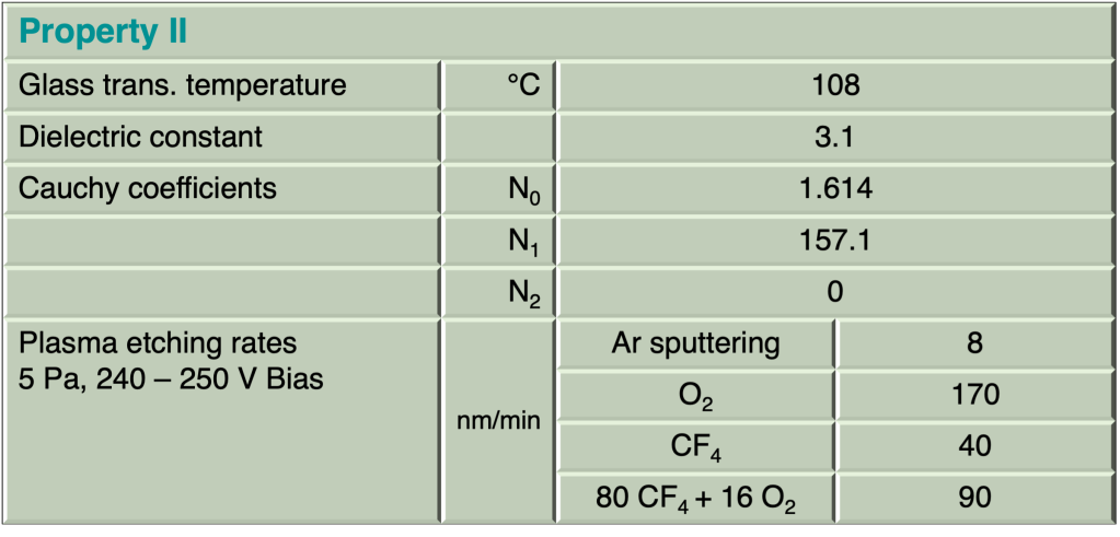 耐乾蝕刻, 高溫穩定性達120℃ - novolac, naphthoquin. diazide, organic cross-linking agent