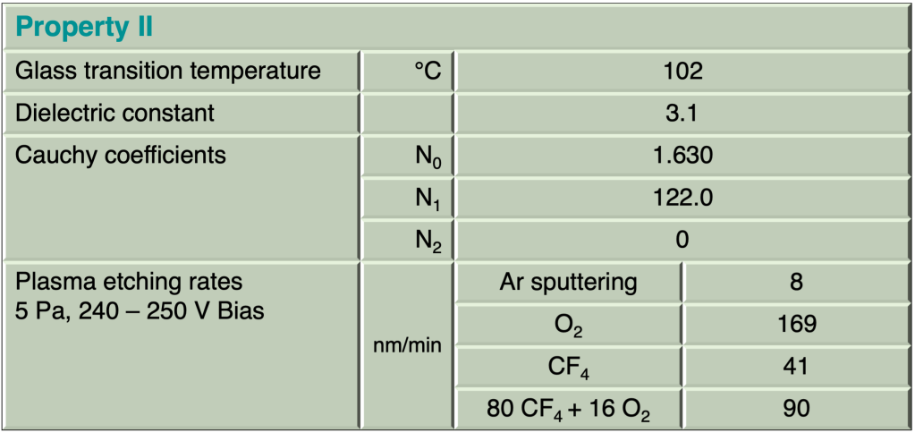- plasma etching resistant, temperature stable up to 140 °C