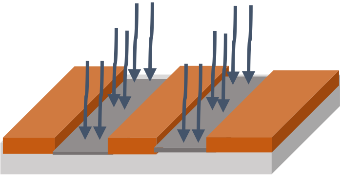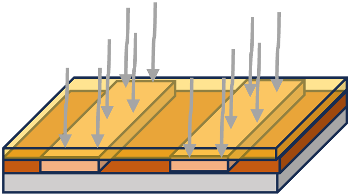 Due to differentiation processes, the lower layer is attacked faster by the developer and pronounced undercut structures are formed (lift-off). These lift-off structures can also be produced with the two-layer system PMMA/copolymer. At first AR-P 617 is coated and tempered at 190 °C, then the PMMA resist AR-P 679.03 is applied by spin-coating and dried at 150 °C. After exposure, both layers are developed in one step e.g. with AR 600-56, treated with stopper AR 600-60 and rinsed.
