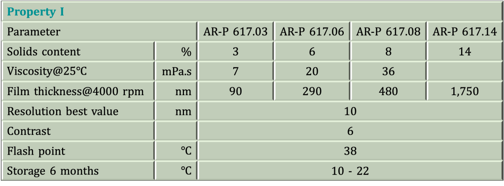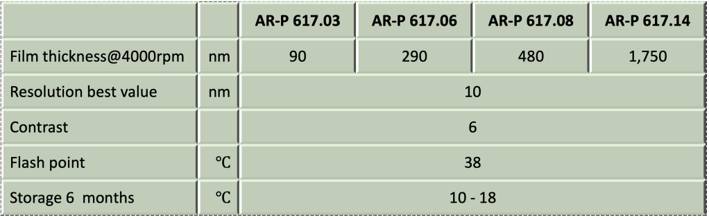 AR-P 617 Series Positive Co-polymer e-Beam Resist