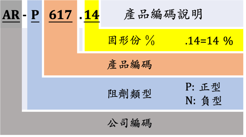AR-P 617 系列產品高分子是MMA(甲基丙烯酸甲酯)與MA(甲基丙烯酸)共聚物 poly(MMA-co-MA, MA 33%).溶劑為PGME. 產品為正型阻劑,適合各種電子束微影製程, 應用於光罩製作,積體電路等高精密圖案製程(multilayer & planarization),對玻 璃, 矽晶元,金屬等,有良好的接著性.