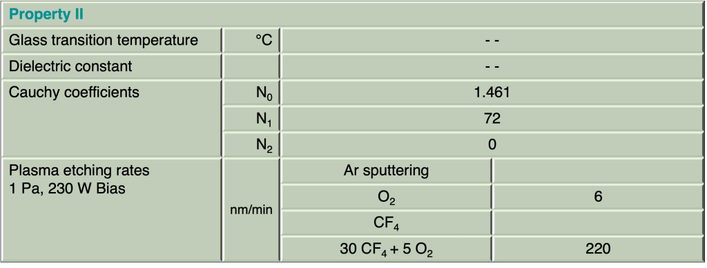 • etch-stable resist structures available in three film thicknesses