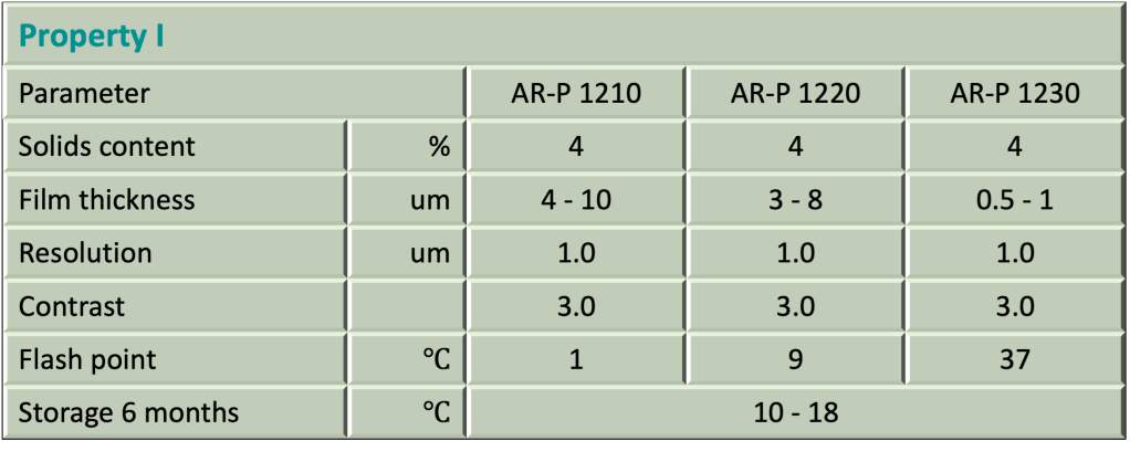 AR-P 1200 系列產品為調配好的噴塗用正光阻, 適合各類型的應用。