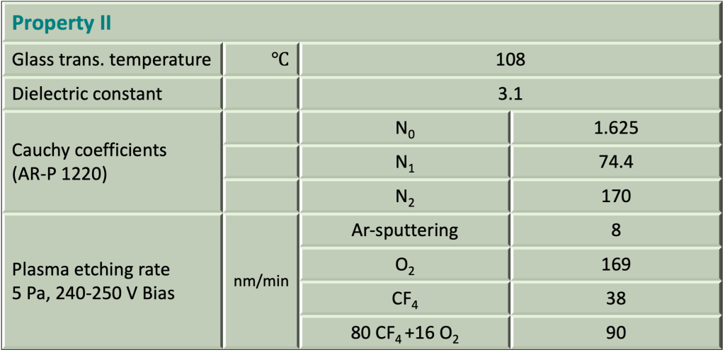Thin films generated with AR-P 1230 and AR-N 2230 require lower exposure doses.