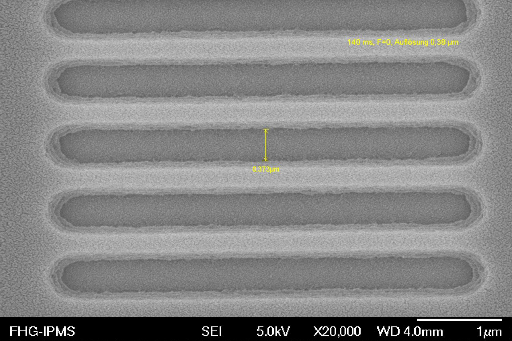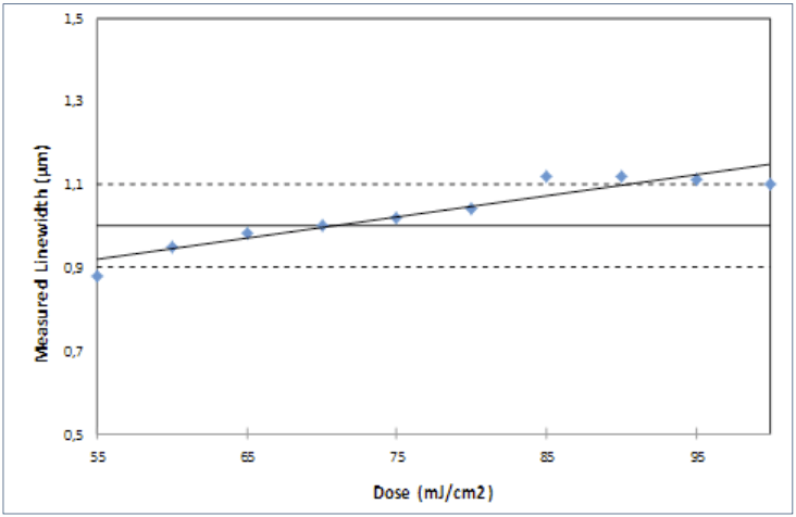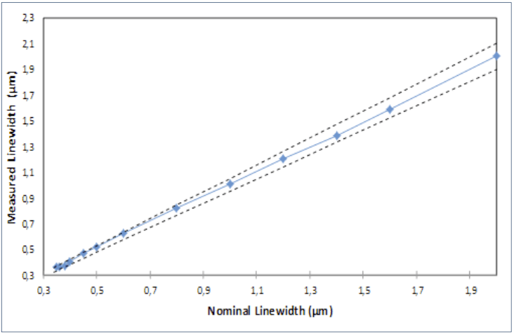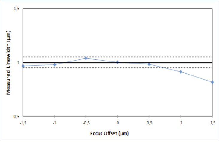 The intended structure sizes can here be realized by varying the focus between -1.5 to 0.8 (parameter see graphic linearity).