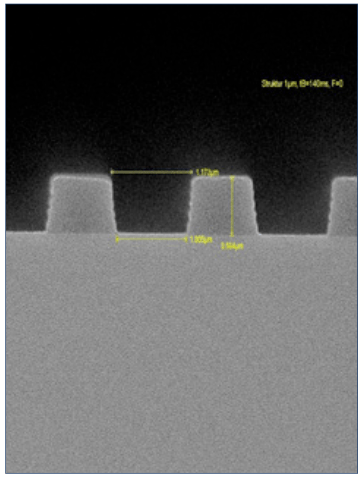 Underexposure leads in the case of complete development (more than 55 ml/cm2) to narrower trenches, while overexposure results in a widening of trenches.