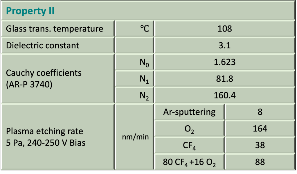 塗佈特性適合基板表面複雜的高低結構 - plasma etching resistant, stable up to 120 °C