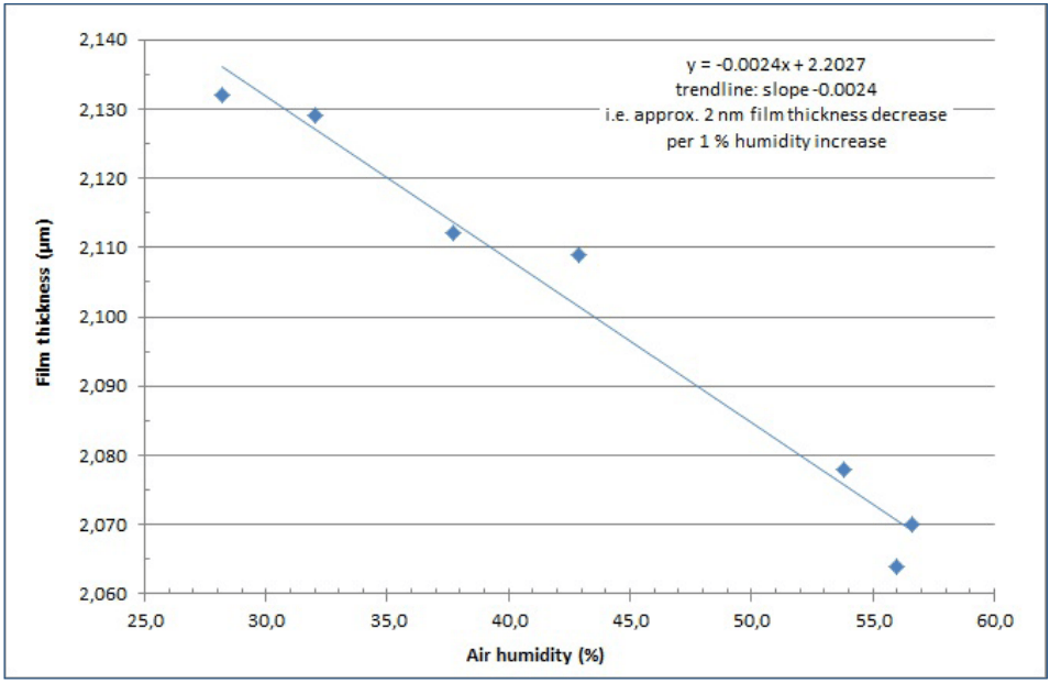 With increasing humidity, the resulting film thickness during coating of the resist decreases.