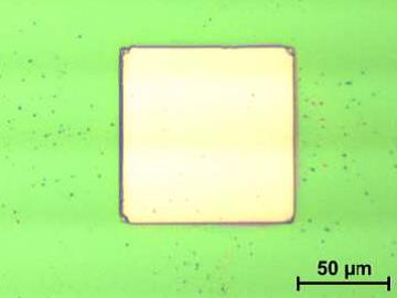 PPA layers can also be structured by laser ablation. Substrates coated with AR-P 8100 were patterned at the IOM Leipzig with pulsed laser light at different wavelengths. This enabled the realization of architectures with very low edge roughness. In the absorption range of PPA (at 248 nm), complete ablation was achieved without damage of the silicon substrate.