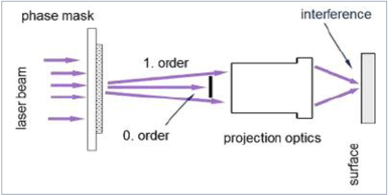 The laser beam can also be used to generate 3D structures. Interference projection through a phase mask allows the production of lattice structures with sinusoidal shape and very low surface roughness..
