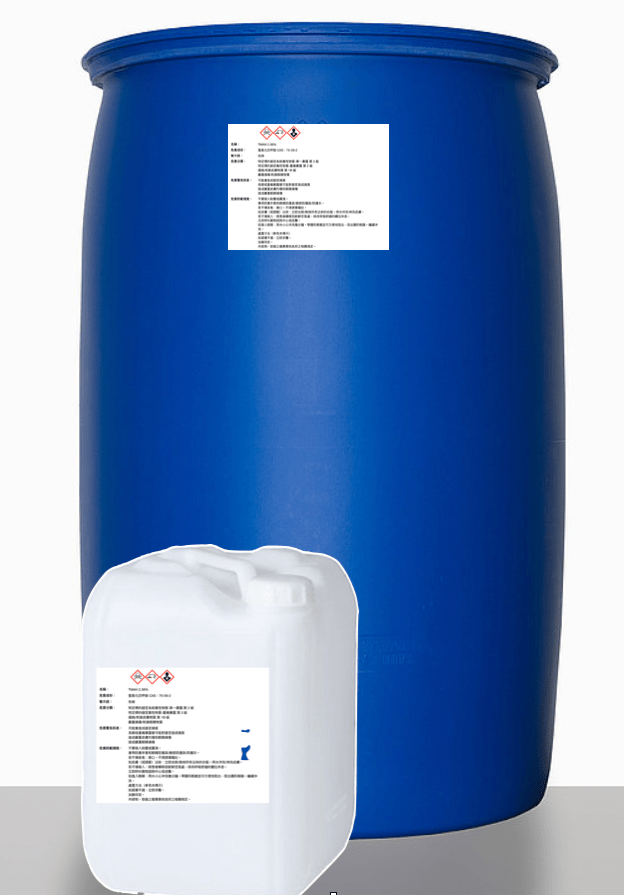 金屬離子,氯離子及粒子含量合乎製程標準。 - packing with 20L and 200L drum. For immersion, batch and single wafer process.